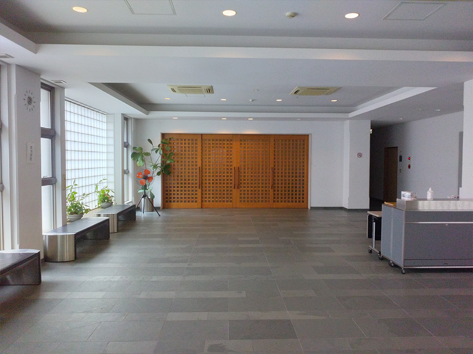 ロビーは、広々とした開放的な空間が特徴です。大きな窓から自然光が差し込み、明るく爽やかな雰囲気を作り出しています。シンプルで洗練されたデザインが、訪れる方々に落ち着きと安心感を提供します。