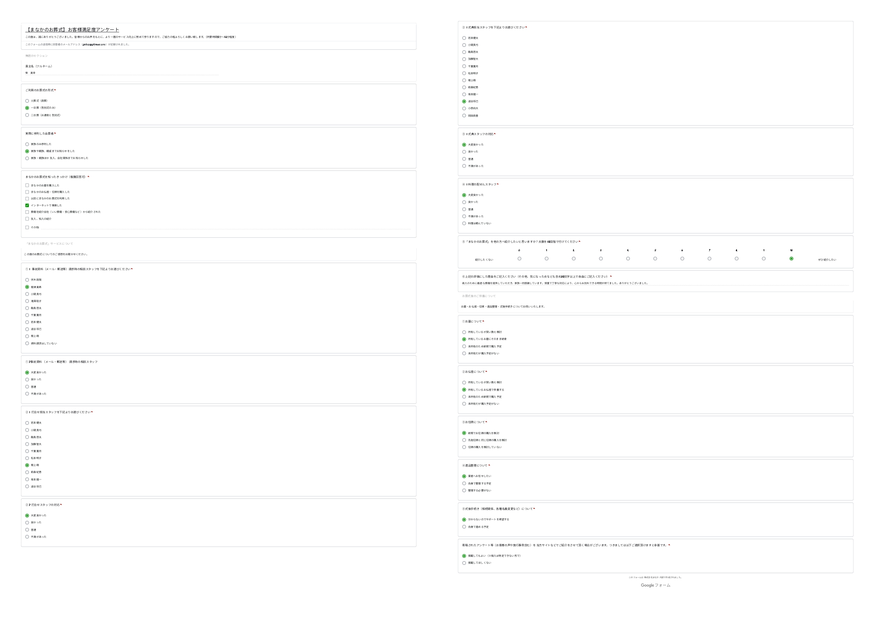 想盆のお葬式では、葬儀を終えられたご家族やご遺族の方にアンケートにご協力いただき、より良い葬儀サービスの提供に努めております。