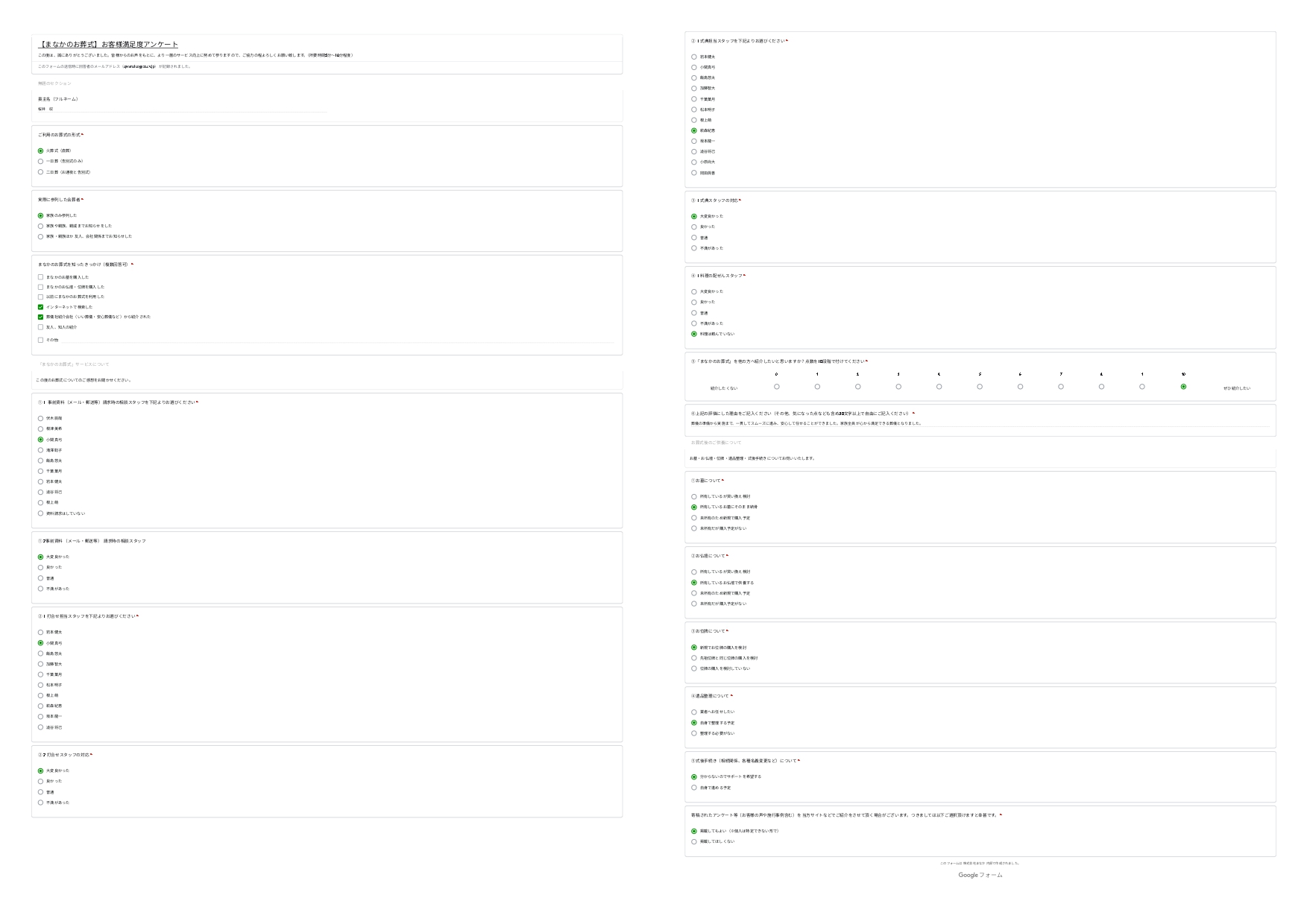ようようの庭のお葬式では、葬儀を終えられたご家族やご遺族の方にアンケートにご協力いただき、より良い葬儀サービスの提供に努めております。